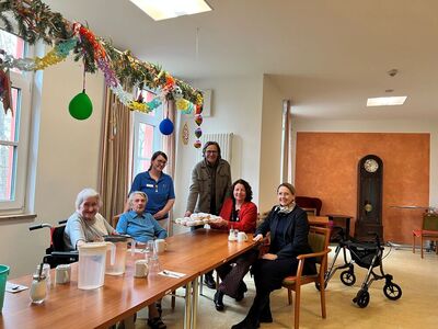 Rottenburg. Eine besondere Überraschung hatte die SPD Rottenburg am Rosenmontag für die Beschäftigten und Bewohner der Spitalstiftung Pattendorf parat: SPD-Vorsitzende Rosmarie Schmid besuchte zusammen mit Gemeinderatskandidat:innen Anita Gegenfurtner, Bernhard Bannes, Gisela Hierl und Kerstin Seinige, sowie Landratskandidatin Ruth Müller wieder einmal das Seniorenheim und hatte passend zum Faschingsendspurt Krapfen dabei. Heimleiter Thomas Rohrmeier und Pflegedienstleitung Ruth Schweiger freuten sich über den Besuch und die damit verbundene Wertschätzung ihrer Arbeit. Seit Corona besuchen die SPD-Mitglieder immer wieder das Seniorenheim, um auch den Mitarbeitenden in der Pflege zu danken. „Denn Klatschen alleine reicht nicht“, formulierte es Ruth Müller beim Termin vor Ort.
